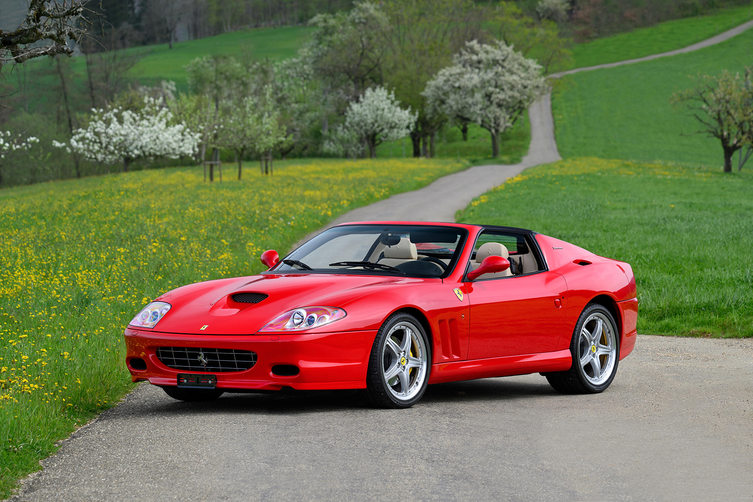 Delivered new on 3 August 2005 in Switzerland, this 575 Superamerica, endowed with the optional F1 gearbox, bears the iconic Rosso Ferrari livery, combined with a Tan Daytona leather interior with a black upper dashboard. The steering wheel is two-tone Tan and black. With only 13,800 km from new, the car is still registered in Switzerland and has been in the hands of its previous owner for 11 years. It is accompanied by its documentation and a Swiss registration document.