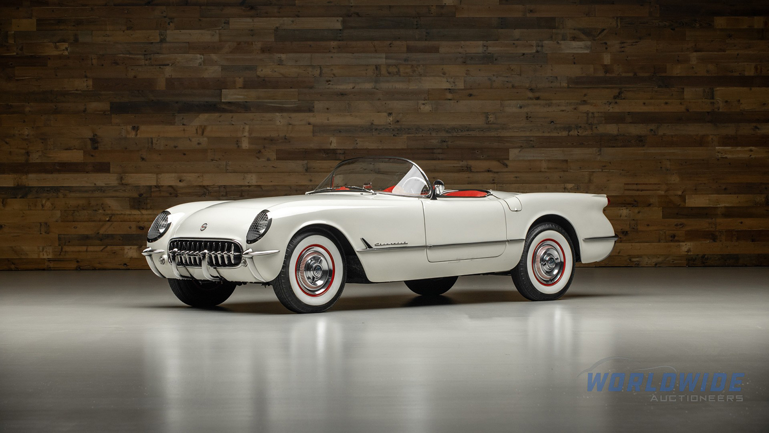 Worldwide Auctioneers has reviled its first feature car for its 2025 Auburn auction taking place August 28-30 in Auburn, Indiana. The historic first-year example 1953 Chevrolet Corvette is number 215 of just 300 originally built and is listed in the C1 Corvette Registry. Featuring an older restoration completed by LaVine Restorations, it is equipped with its original Blue Flame six-cylinder engine. Interior and black soft top were done by Corvette expert John Kennedy.